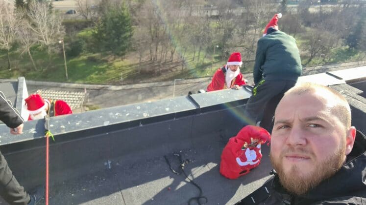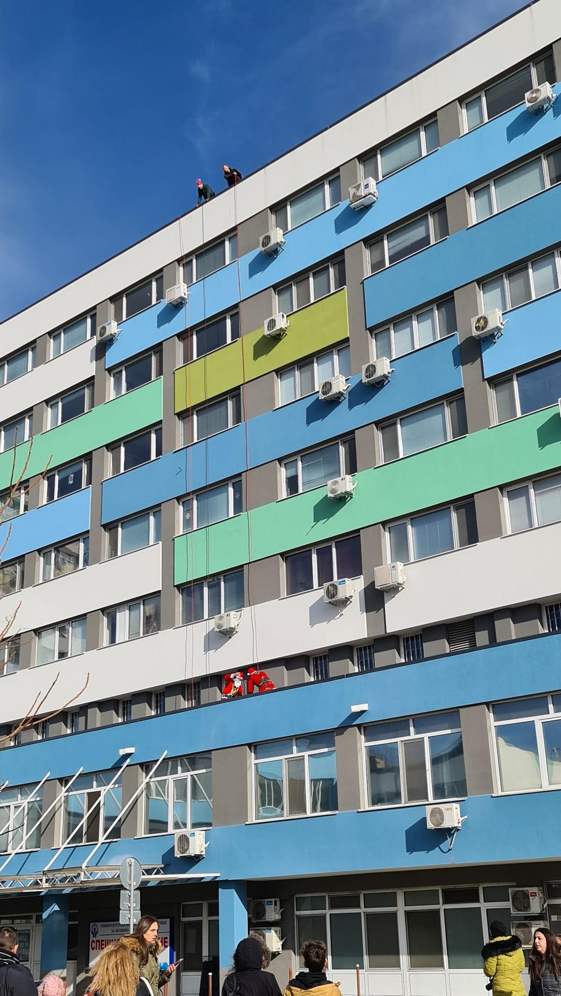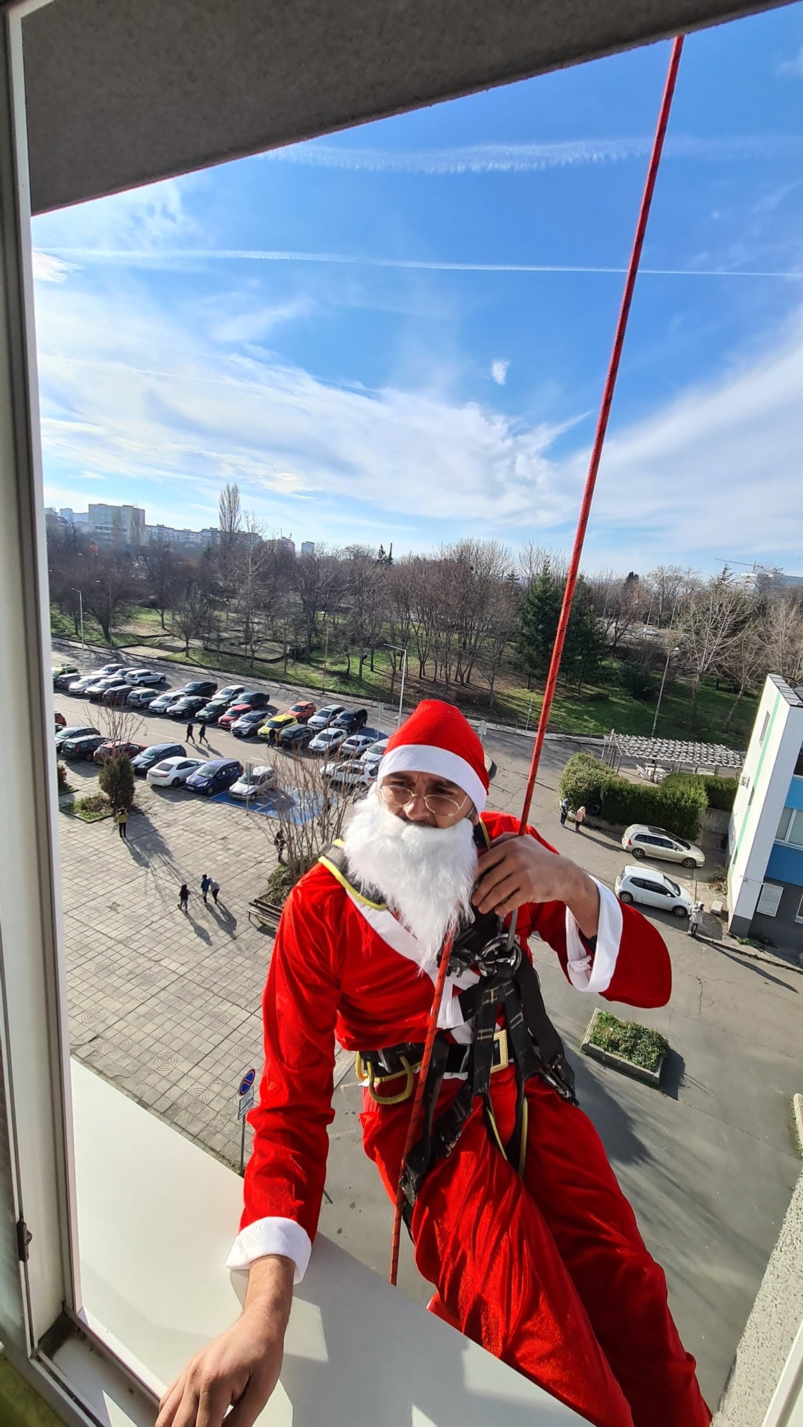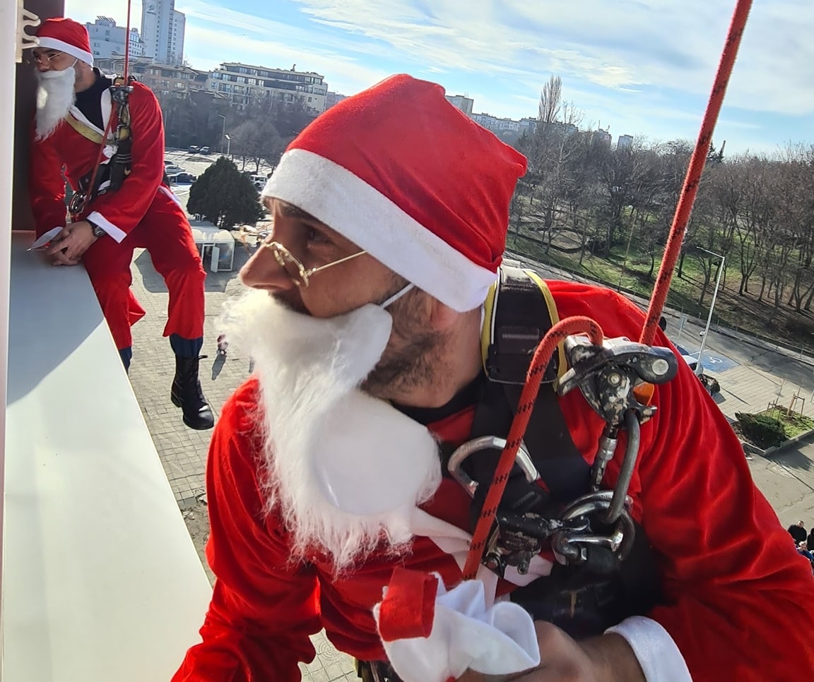 Дядо Коледа се спусна по фасадата на УМБАЛ-Бургас и донесе усмивки на десетки деца в лечебното заведение. Благотворителната инициатива е организирана предимно от четирима души, от които двама алпинисти и е била подкрепена от техните приятели. Сред организаторите е Иван Иванов, който разказа за Искра.бг: