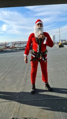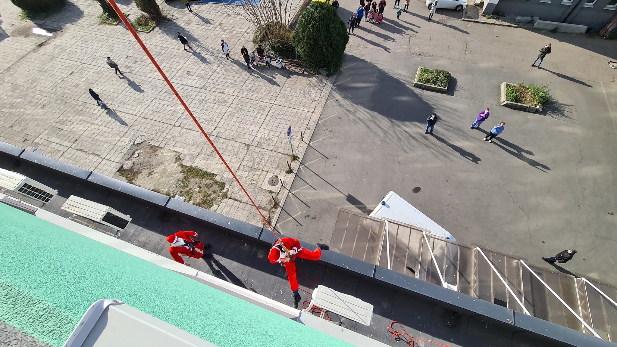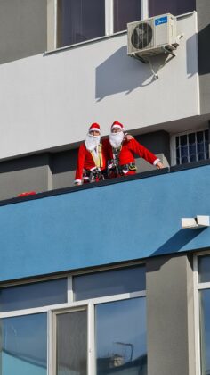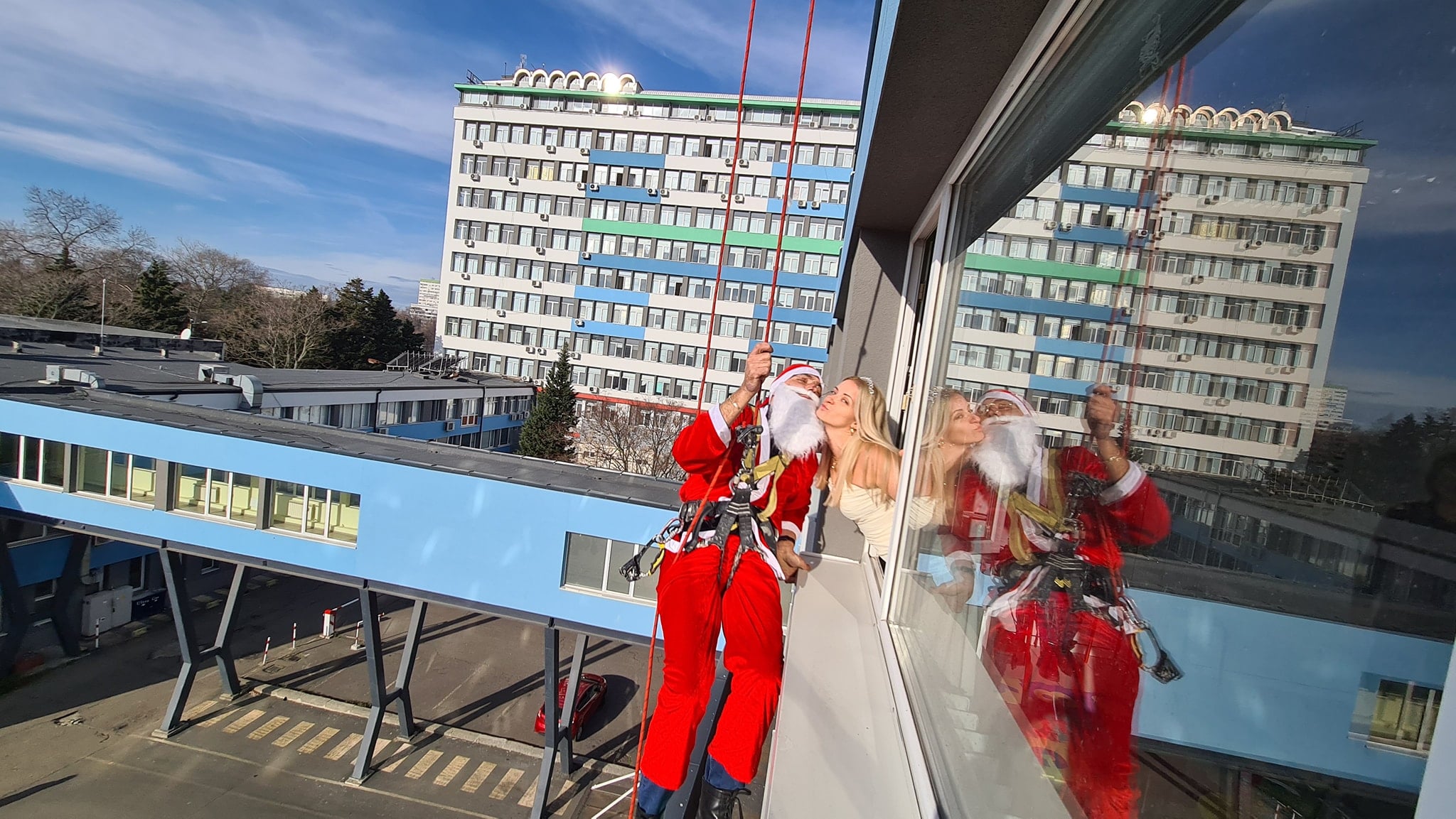 Дядо Коледа се спусна по фасадата на УМБАЛ-Бургас и зарадва десетки деца