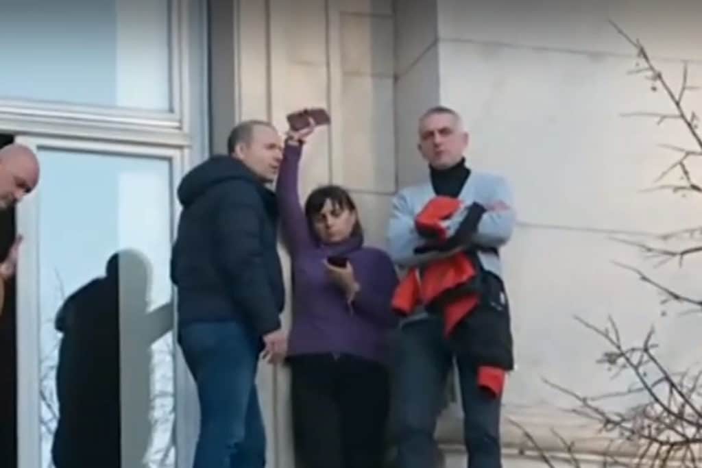 Една от петте барикадирали се в сградата на Народното събрание медицински сестри излезе на перваза на прозореца. Представител на Националната служба за охрана опитваше да я убеди да се прибере, но тя отказваше дълго време да го направи.