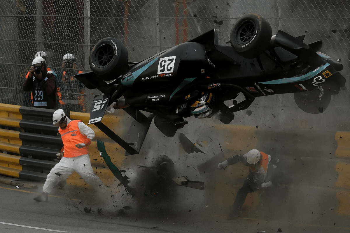 Формула 3 не е хоби. Макао не е писта – това е улична артерия, превърната във високооктанов капан. Няма широки зони за безопасност, няма място за грешка. На завоя Lisboa, където стана инцидентът, пилотите влизат със скорост над 270 км/ч, а ширината на трасето е колкото за две коли.