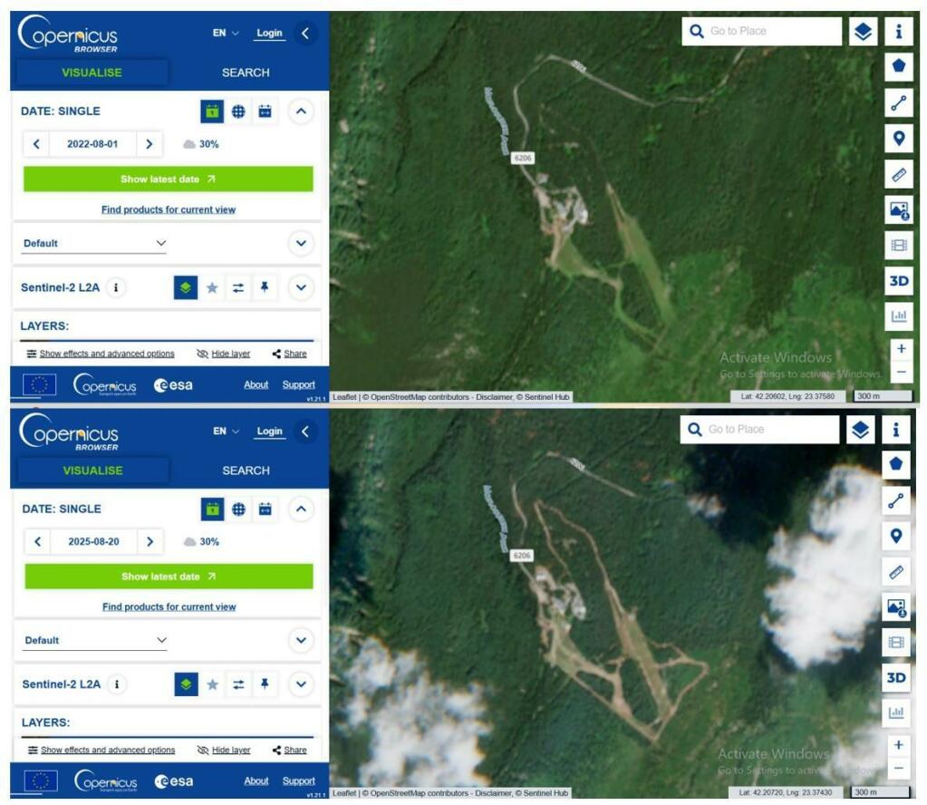 Белев публикува сателитни снимки от мястото и твърди, че въпреки видимите промени на терен, институциите – РДНСК, Горското стопанство и РИОСВ – отказват да признаят наличието на ново строителство. Според официалните им позиции става дума единствено за „поддържане на съществуваща инфраструктура“.