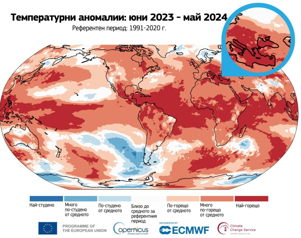 „С други думи – вече цяла година температурите в световен мащаб са по-високи от когато и да било, откакто имаме данни от измервания. В световен мащаб температурите през последните 12 месеца са били с 0,75°C по-високи от средното за периода 1991-2020 г. и с цял градус и половината над прединдустриалните нива.“