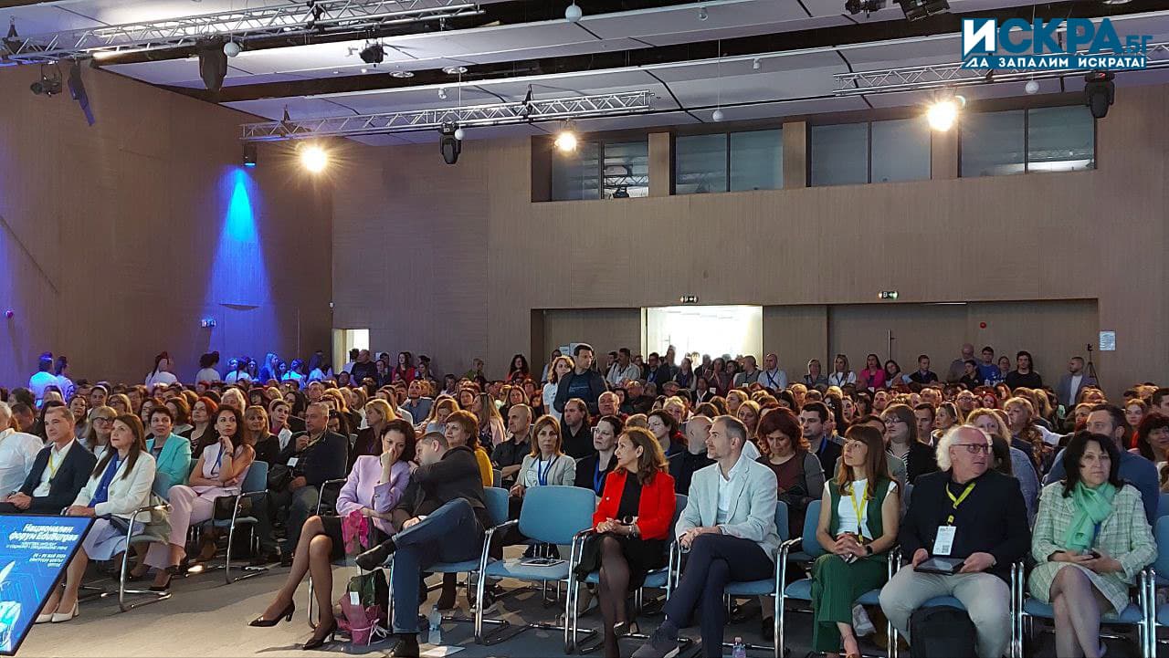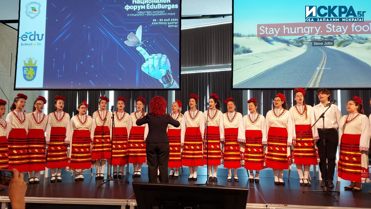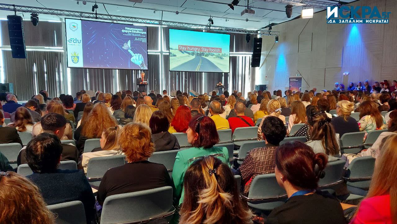 Припомняме, че събитието, което започна днес и ще продължи утре, събира приблизително 500 участници от цялата страна в Конгресния център до Морска гара. Националният форум EduBurgas е инициатива на Регионалното управление на образованието в Бургас и Община Бургас, която има за цел да създаде пространство за диалог между образователните експерти и заинтересованите страни за промотиране на иновации в българското училище и повишаване качеството на просветата. Очакваше се да бъде открито от просветния министър проф. д-р Галин Цоков и от кмета Димитър Николов, но нито един от двамата не дойде. За сметка на това фолклорен ансамбъл приветства гостите с невероятното си изпълнение.