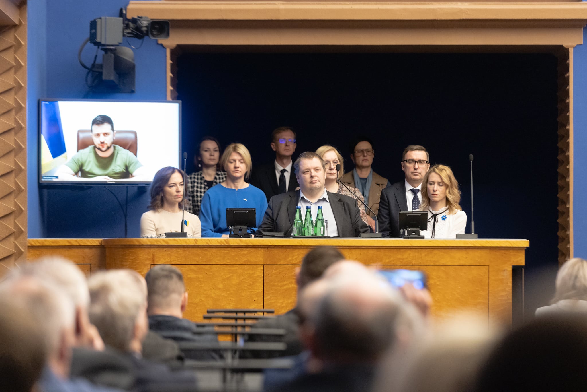 „Това е ситуацията, която никой не може да разбере напълно, освен ако не го е преживял лично. Възхищаваме се на пряката му и открита комуникация днес, но и на подхода му в обръщенията си към целия свят. Това е важно условие, за да помогнем посланията на Украйна да достигат до всички хора от свободния свят. Руските лидери ясно демонстрираха волята си да унищожат украинската държава както с думи, така и с действия. Същевременно все още не сме видели пълния размер на престъпленията, извършени от Кремъл. Русия се подготвя за голяма атака срещу източната част на Украйна.