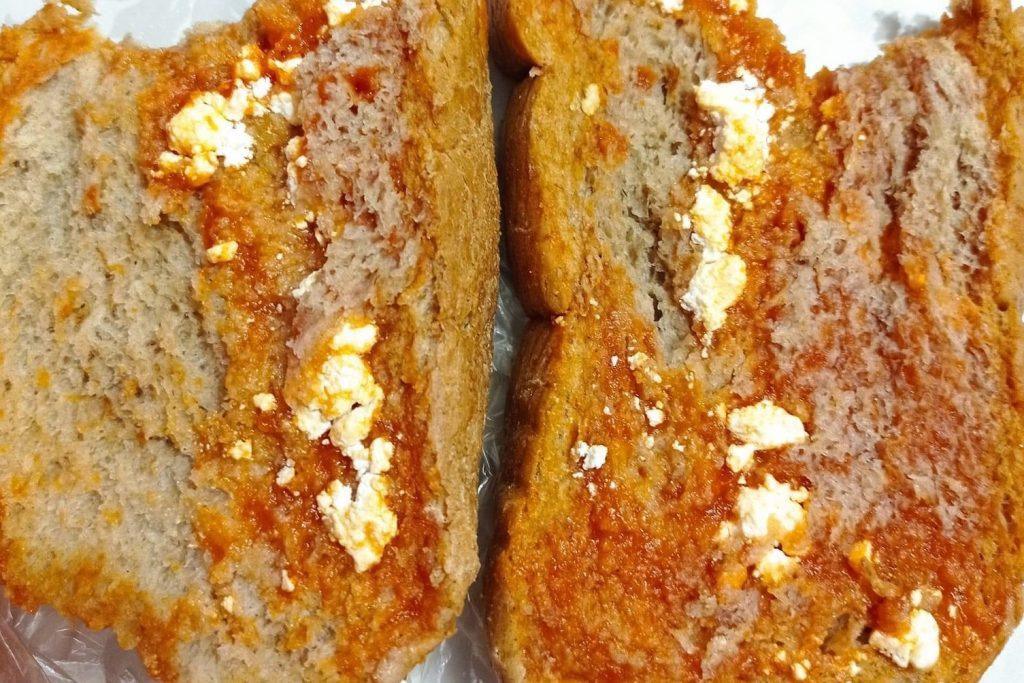 Снимка, на която се виждат закуски, раздавани на децата в училище, предизвика вълна от възмущение в социалната мрежа Facebook. Учениците е трябвало да ядат филии, които очевидно са намазани единствено с доматено пюре и по тях има и много малко количество сирене.