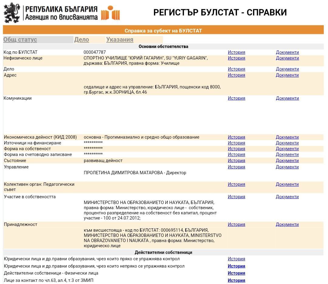 Пролетина Димитрова Матарова е новият директор на Спортно училище „Юрий Гагарин“ в Бургас. Това показва справка в Агенцията по вписванията, направена от Искра.бг. Тя заема поста на Янчо Стойчев, който беше освободен заради конфликт на интереси.