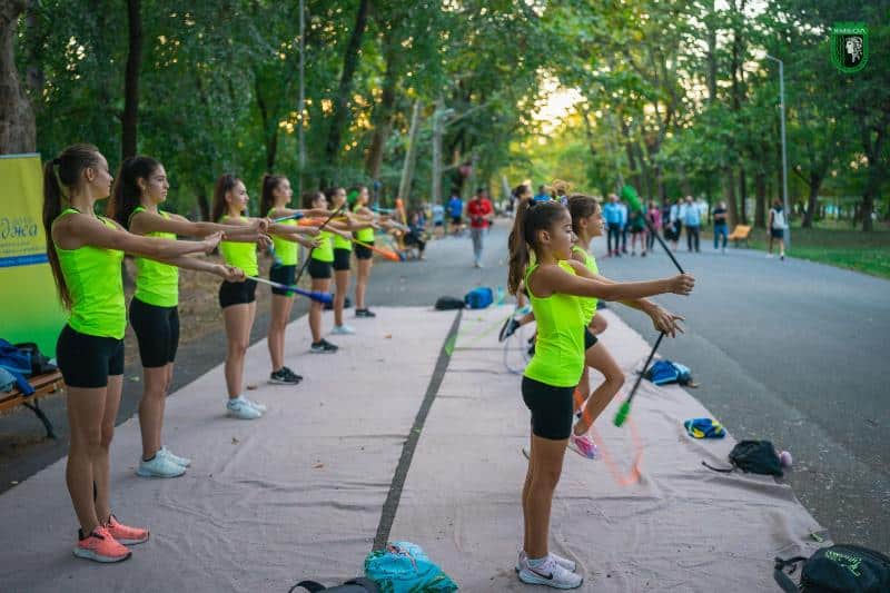 Спортен клуб по акробатика „Енчо Керязов“, който само преди три дни отново спечели вицешампионска титла от държавния турнир в Русе, даде старта на атрактивните демонстрации в Градския парк, посветени на Европейската седмица на спорта. Посетителите имаха възможност да наблюдават и изпълнения на Спортен клуб по брейк „Пластик деформейшън Скуад“, на клубовете по спортни танци „Тандем“ и „Ямбол“, на мажоретните състави от основните училища „Николай Петрини“ и „П. Р. Славейков“. Министърът на спорта Димитър Илиев и Валентин Ревански потренираха с тенис-клуб „Академия Фори“, а след това и с баскетболен клуб „Тунджа“.