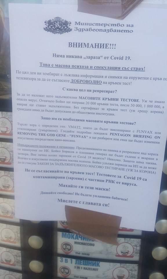 Във Варна се появиха фалшиви листовки от името на Министерството на здравеопазването. В тях се отправя призив да не се спазват мерките срещу разпространението на COVID-19 у нас. Снимки на листовките бяха публикувани в социалната мрежа Facebook.