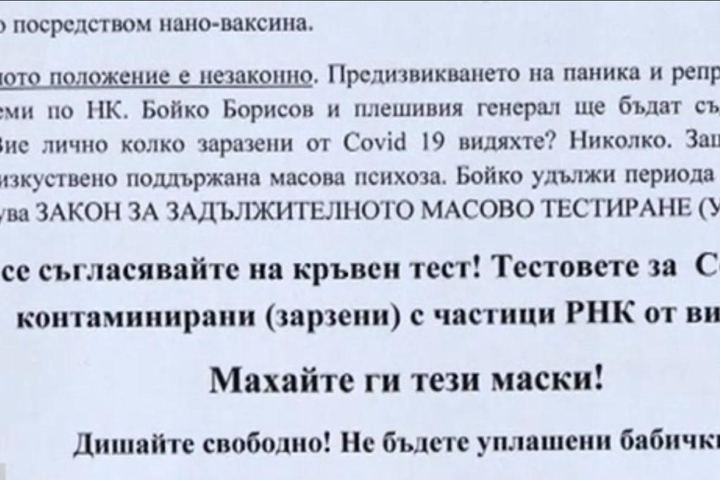 В тях се твърди, че зараза не съществува. Освен това гражданите се призовават да не носят маски и да отказват да бъдат тествани за коронавирус.