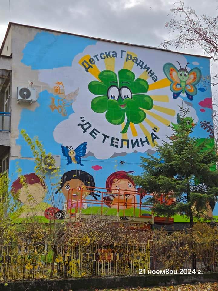 „Проектът не само допринася за по-приветлива среда, но и стимулира детското въображение и креативност. Изрисуваните фасади съчетават красота и функционалност, подчертавайки мисията на детската градина да бъде място за развитие, забавление и учене“, подчерта Милков и допълни, че Общината ще продължи да облагородява градските пространства с различни проекти.