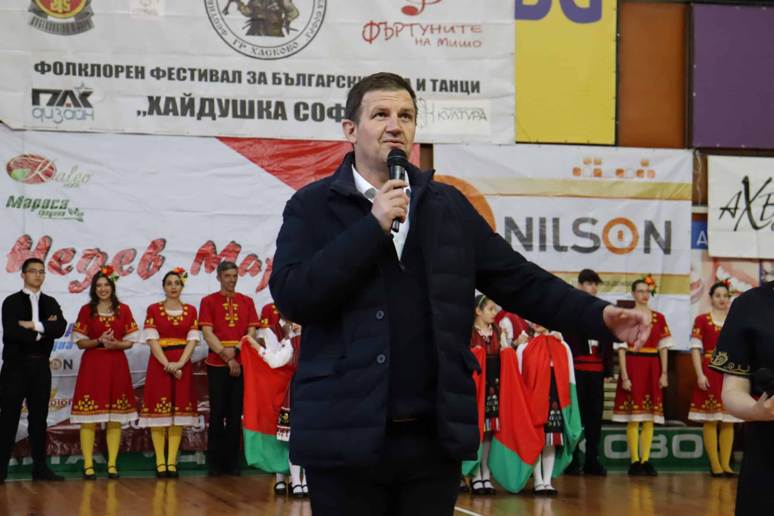 „Благодаря ви, че сте тук и сте част от неповторимата „Хайдушка софра“. Ние в Хасково си знаем: забият ли тъпаните на „Хайдушка софра“, значи пролетта е дошла и животът в Хасково се възражда с пълна сила! Пожелавам Ви успех, много веселие в следващите часове. Шумни и много силни благодарности за създателя на „Хайдушка софра“ Мишо Кадиев и неговите „Фъртуни“, каза в приветствието си кметът на Хасково Станислав Дечев.