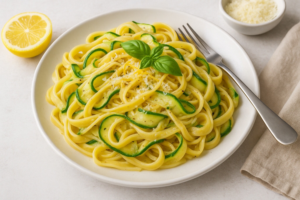 В сезона на свежите зеленчуци и бързите рецепти, едно ястие се откроява със своя фин вкус и минималистична елегантност — фетучини с тиквички и лимонов сос. Комбинацията от деликатна паста, свежа лимонова нотка и разтопен пармезан създава усещане за изискан ресторант у дома.