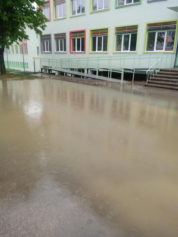 Дворът на основното училище „Свети Свети Кирил и Методий“ в Габрово е наводнено. Това се вижда на снимки, разпространени в социалната мрежа Facebook. Причина са поройните дъждове, които са се изсипали в града.