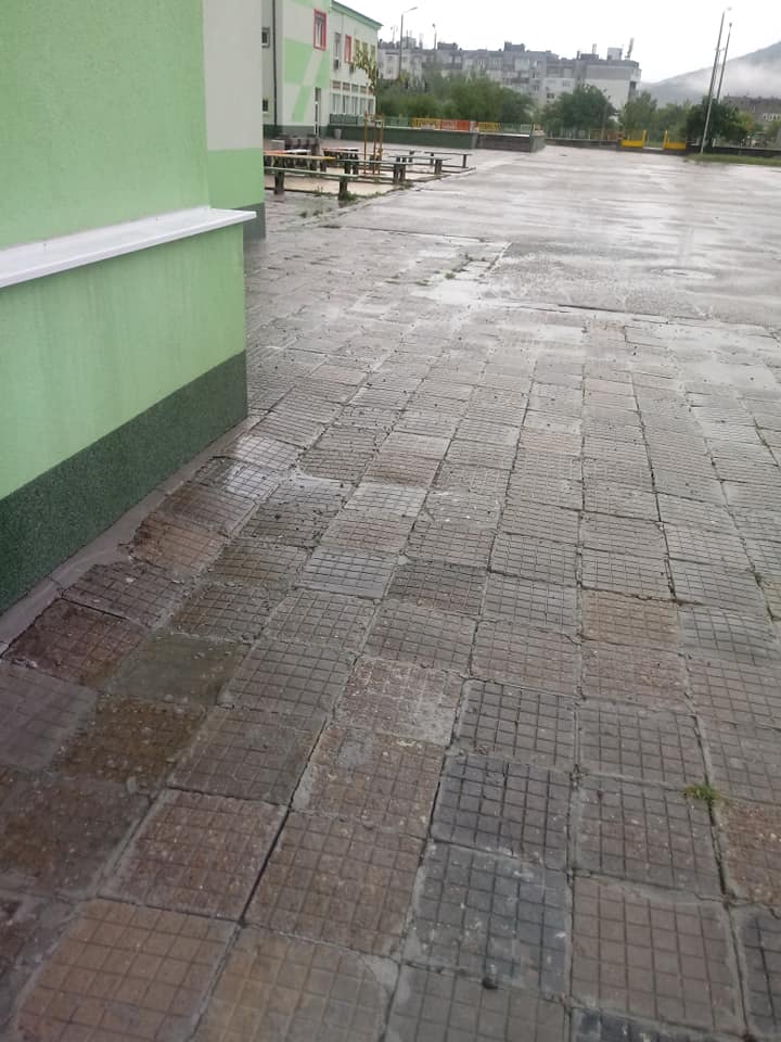 На фотосите е показано, че дворът се е превърнал в „река“. Според автора на публикацията има теч и по стените във физкултурния салон. Той се надява, че ще се вземат мерки и ще се спре това безобразие.