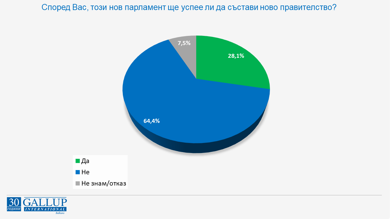 Българите не са обнадеждени, че ще може да се състави ново правителство. Избиратели предпочитат да има правителство на обявяващите се срещу ГЕРБ сили, отколкото да има нови избори, информираха от „Галъп интерншънъл болкан“.