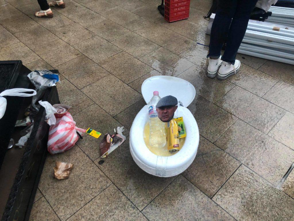Снимката с образа на главния прокурор Иван Гешев е направена по време на 30-ия ден от протестите в София. Хората настояват за оставката на правителството и на Гешев.