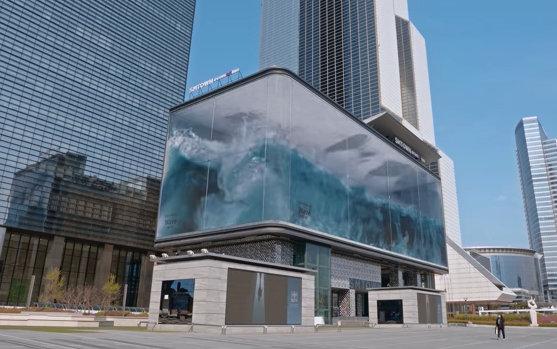 Ваканциите на плажа може да изглеждат като далечен спомен по време на ограничителния режим заради коронавируса, но в района Гангнам в Сеул океанът достига до града. Гигантска вълна се появи на фасадата на градската сграда „SMTown COEX“, като това е най-големият дигитален билборд в Южна Корея. Анаморфната илюзия показва вълна, която се надига, преди да се блъсне в повърхността на екрана, което прави двуизмерния дисплей да изглежда по-скоро като голям резервоар, пише „CNN“.