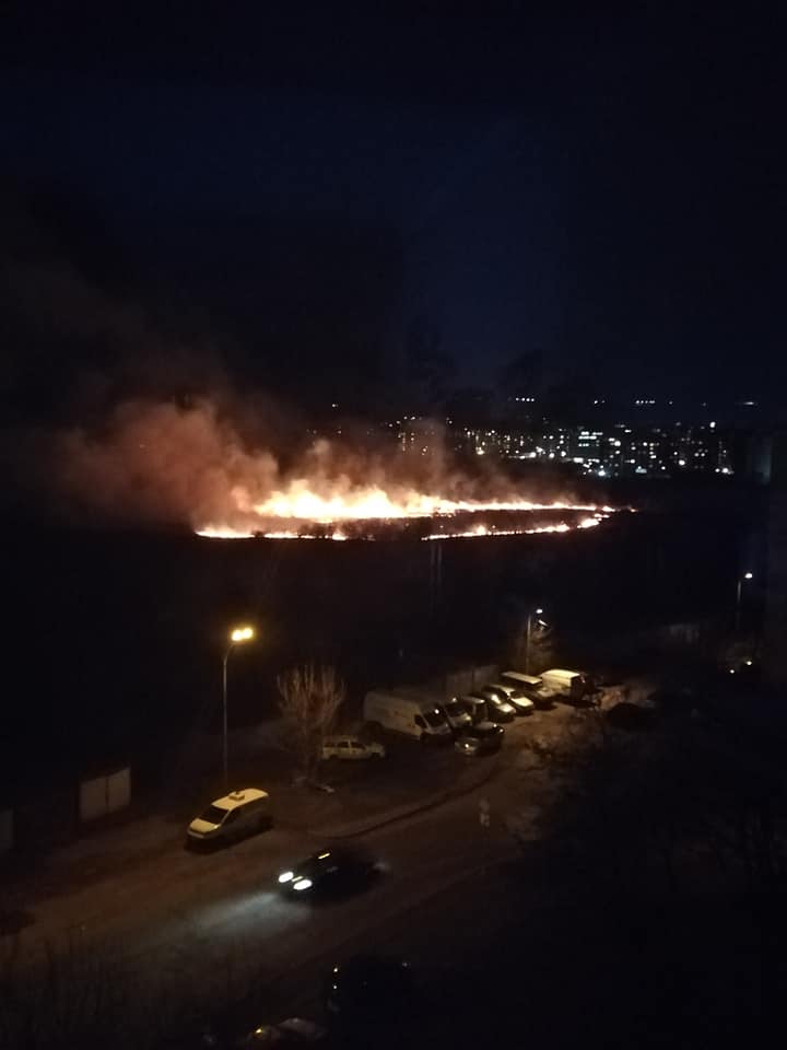 Огнената стихия е възникнала около 21 часа. Запалели са се сухи треви на голяма площ, обясниха от Главна дирекция „Пожарна безопасност и защита на населението“. На мястото са били изпратени 12 пожарникари. Помогнал им е и дъждът.