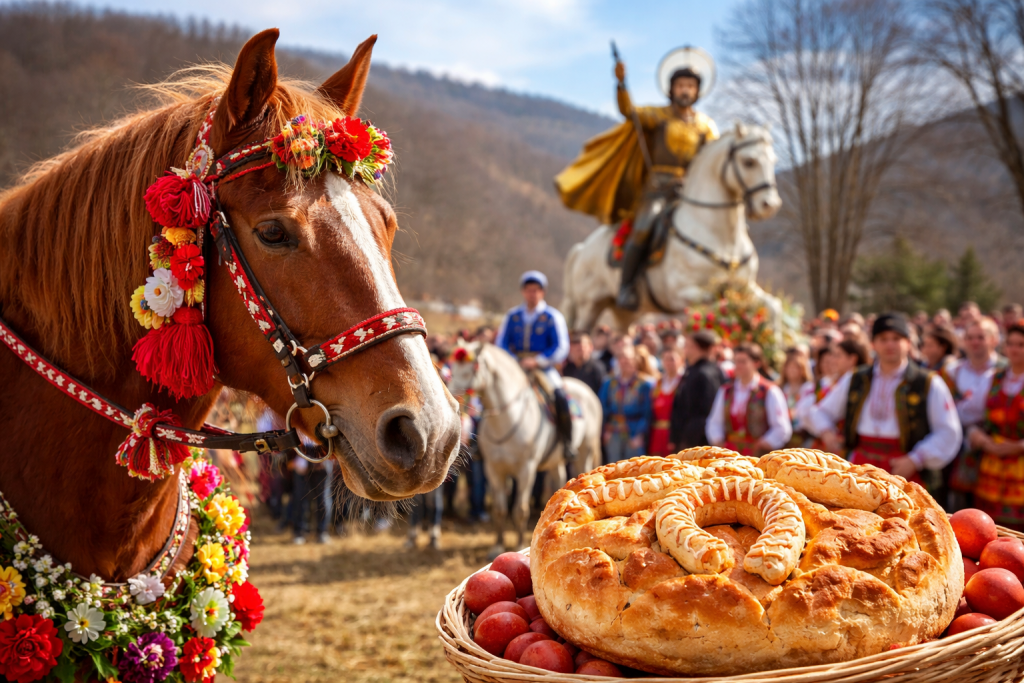Жените приготвят специални обредни хлябове – най-често във форма на подкова или конче. Хлябът се разчупва и раздава за здраве. Част от него се дава и на конете.