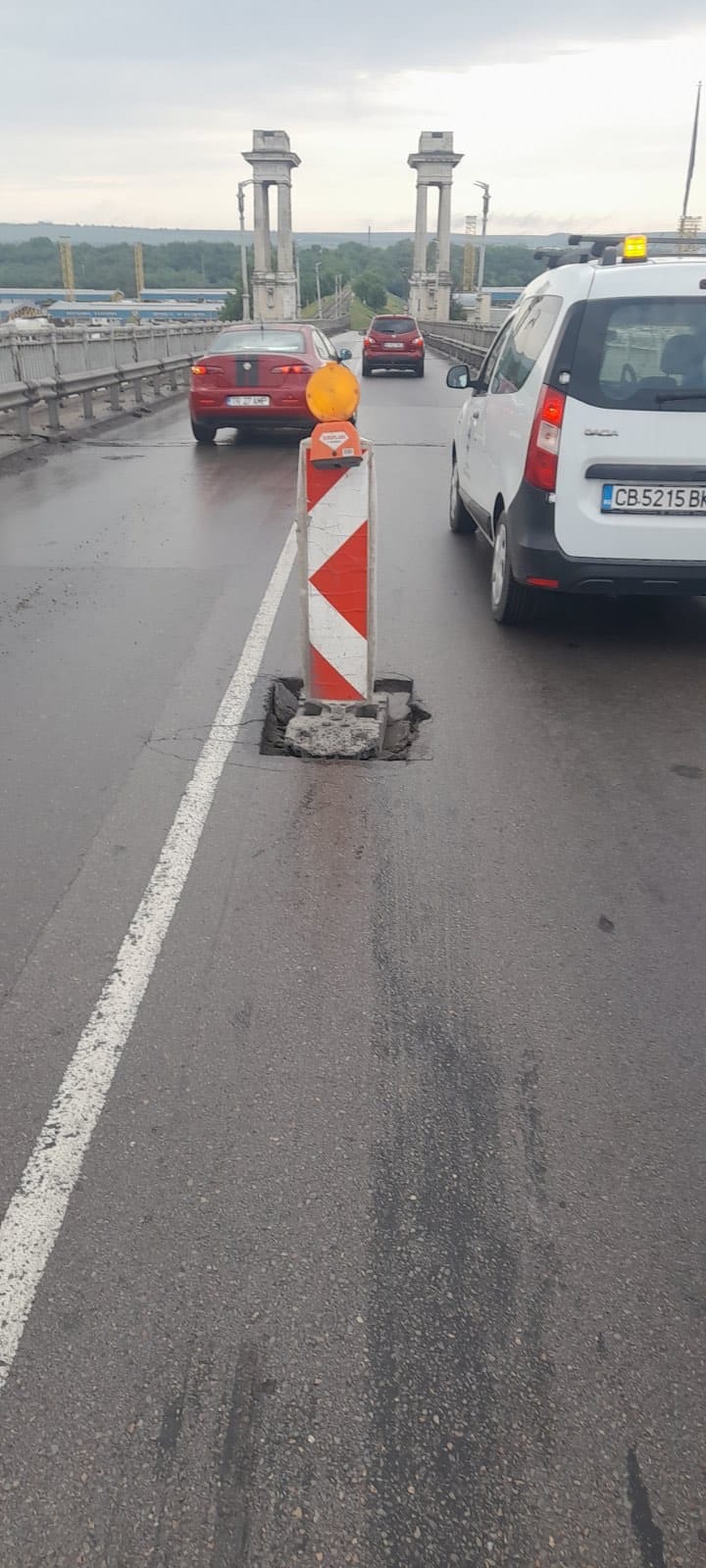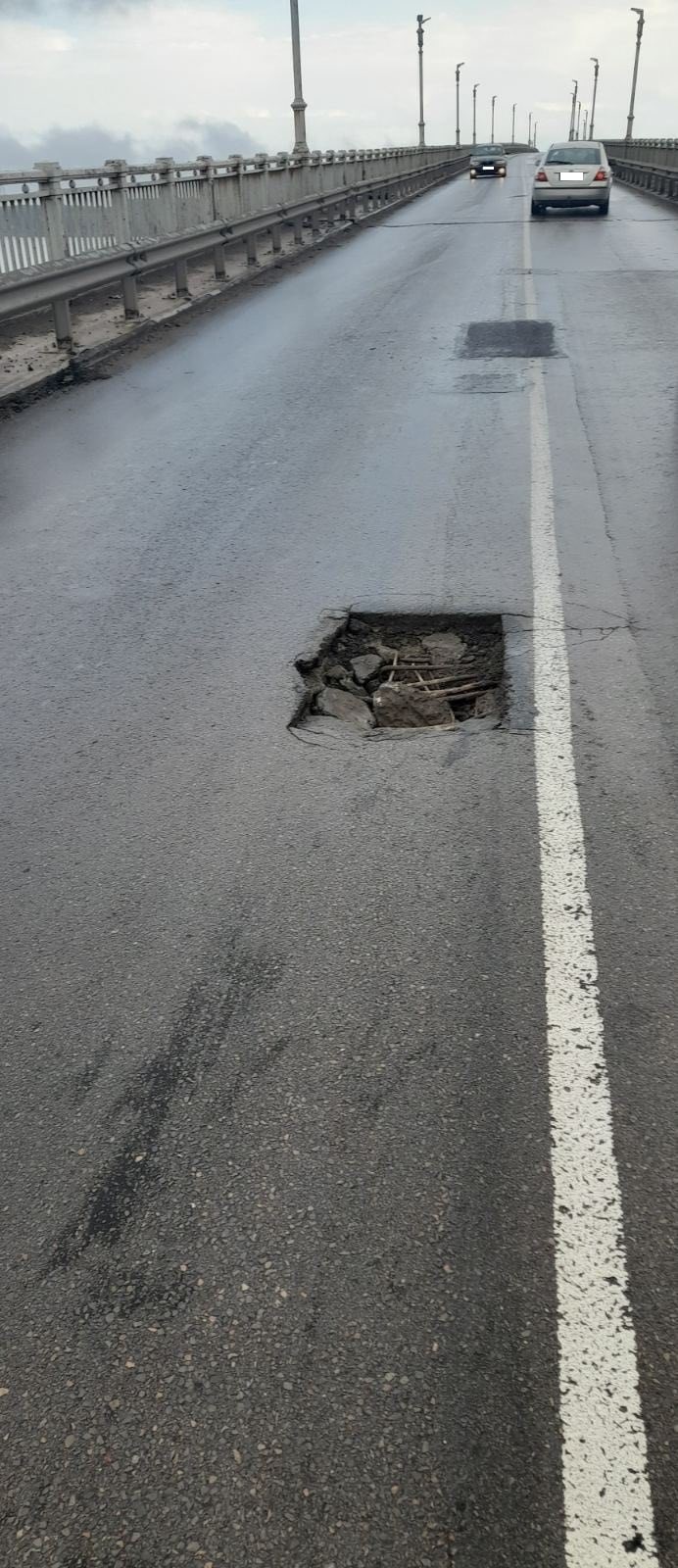 Дупка с размери приблизително 30 на 40 см се е отворила в българския участък на Дунав мост при Русе. Тя е буквално на 100 метра от началото на моста в посока Румъния. Това съобщиха от Областната администрация в Русе.
