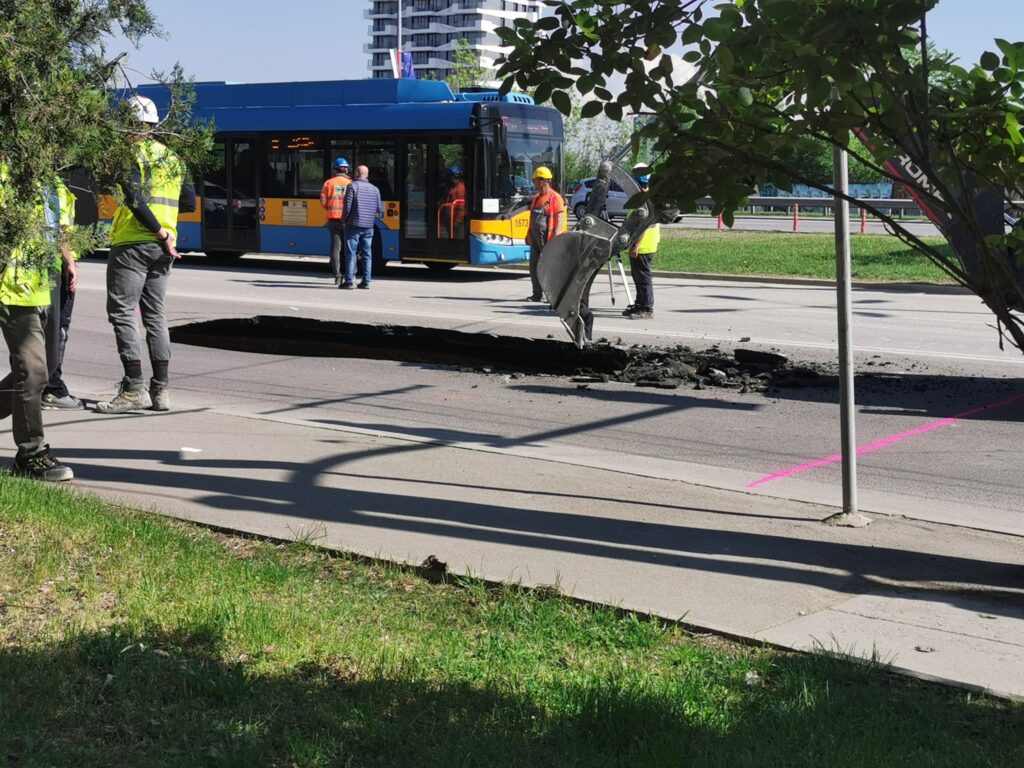 Няма пострадали хора, след като голяма дупка възникна в локалното платно на бул. „Цариградско шосе” в София.