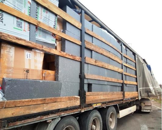 При външния оглед на превозното средство и последвала щателна митническа проверка, служители са установили, че под брезента на ремаркето, по дължината на каросерията, от пода до тавана, са били изградени стени от изолационни пана. Зад тях, освен строителните материали, са били открити множество кашони без обозначителни знаци с обувки, чанти и дрехи.