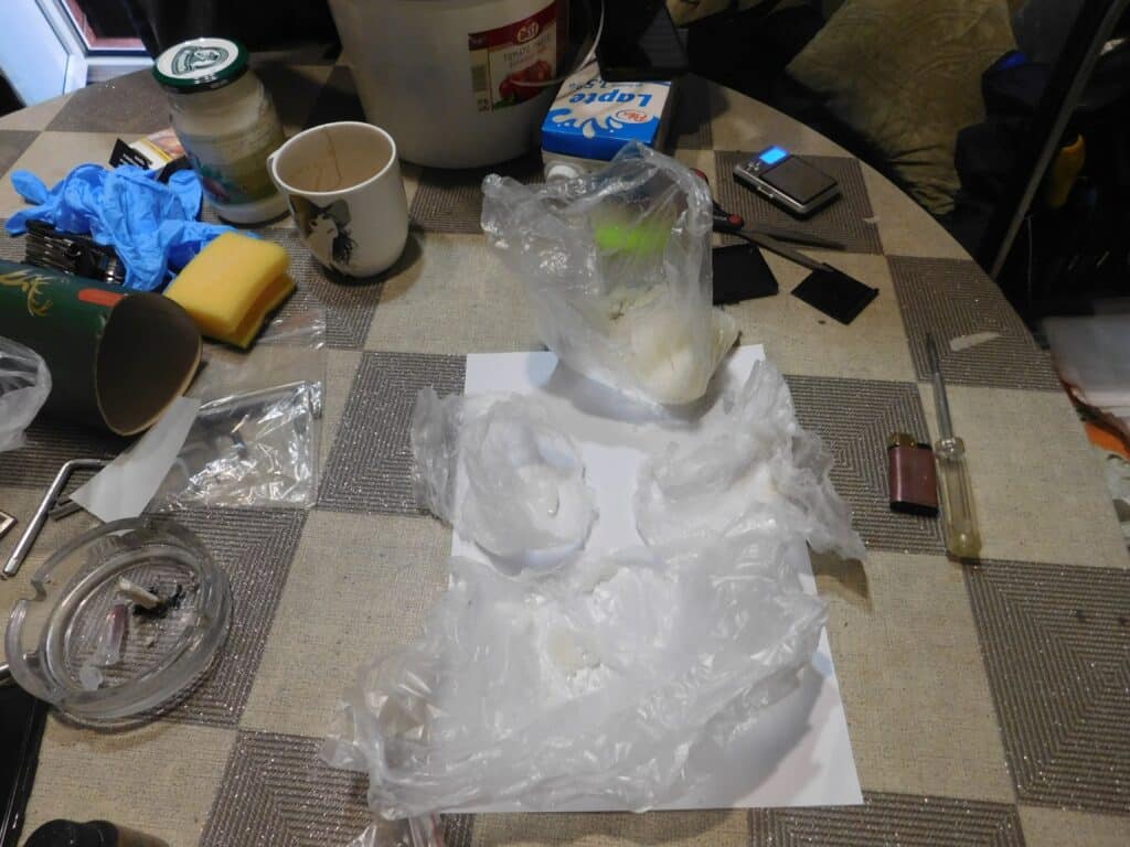 На адреса са били намерени и иззети пет торбички с жълтеникаво кристалообразно вещество – метамфетамин с общо тегло 150 грама.