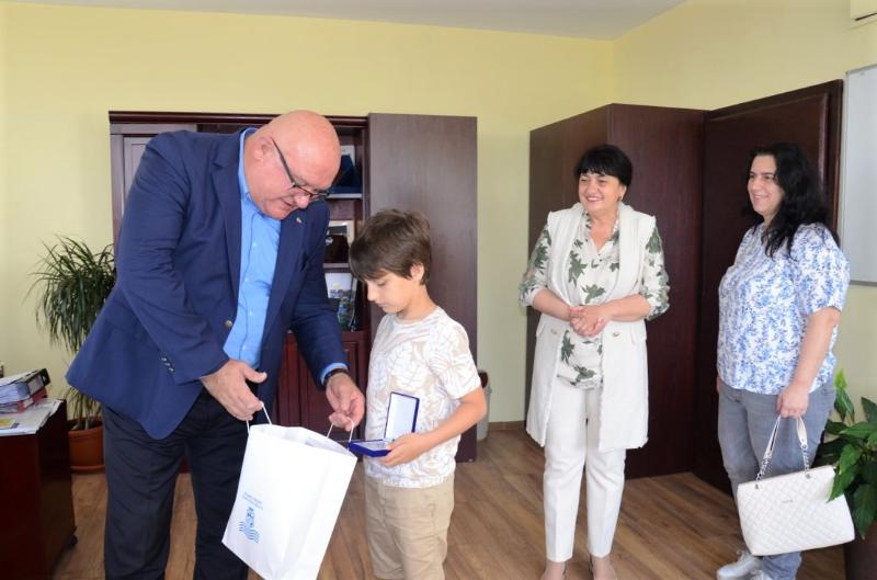Д-р Цветан Ценков заедно със заместник-кмета Борислава Борисова се срещнаха днес с възпитаника на Основно училище „Иван Вазов“, който се прочу с впечатляващия резултат от 99% на IQ тест, проведен от международната организация за интелигентност „Менса“, съобщиха от Община Видин.