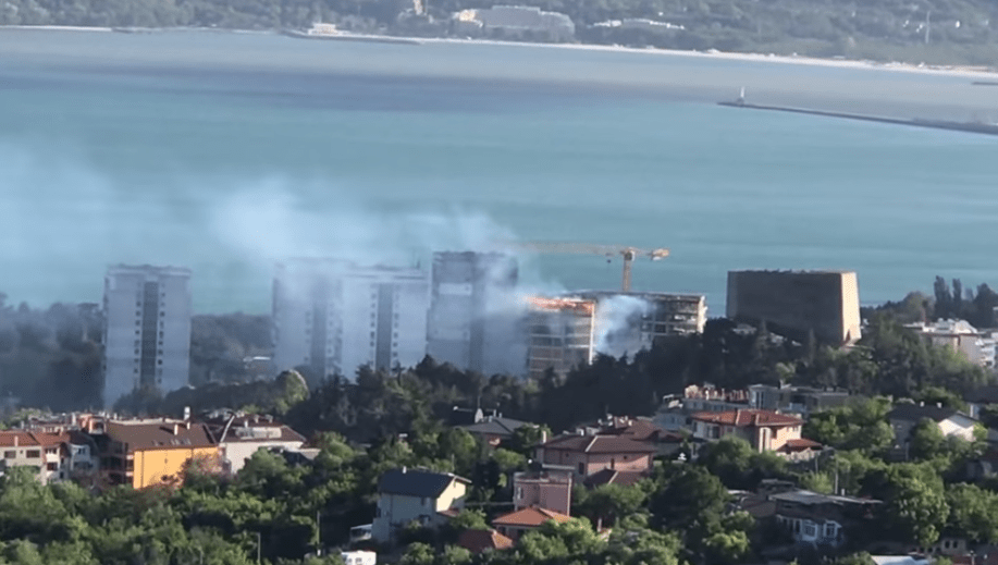 Гори новопостроена сграда на булевард „Васил Левски“, до паметника, във Варна, съобщава потребител във Фейсбук.