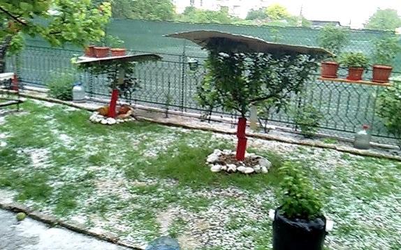 Силната градушка не подмина и Перник. На видео, разпространено в социалните мрежи, се вижда как ледените късове са покрили земята. Тя е паднала в центъра на града и е унищожила овощни дръвчета.