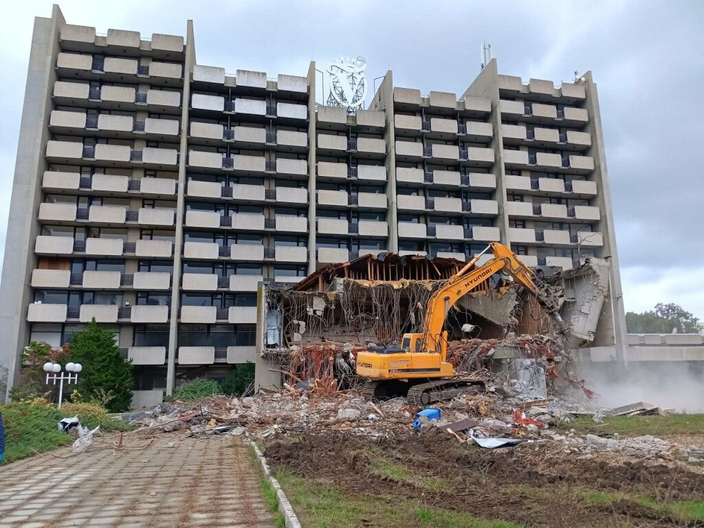 Емблематичната козирка на легендарния Гранд хотел „Варна“ вече е премахната. Едно от най-разпознаваемите лица на българския морски туризъм е в процес на основна реконструкция. Сградата се изтърбушва, като се премахват вътрешни, неносещи елементи, предава Varna24.bg.
