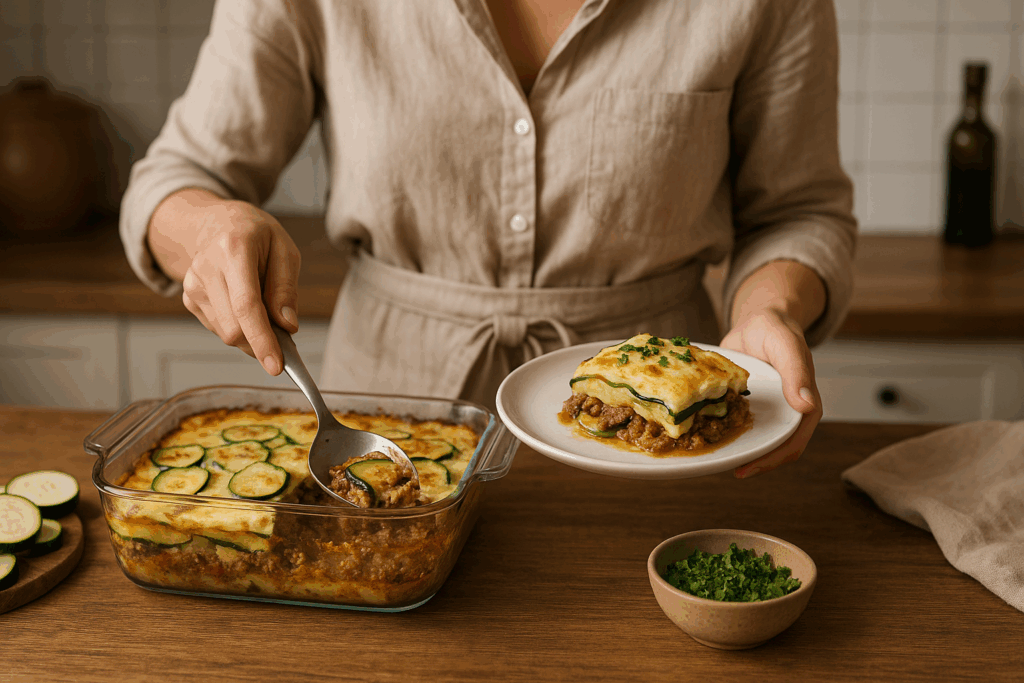 Мусаката – традиция с вкус на слънце и спомени. Гърците ѝ дават душа с канела и зехтин, българите – с картофи и кайма, а всяко семейство има своя собствена интерпретация. Това лято ви предлагаме един лек и изненадващо свеж вариант: гръцка мусака с тиквички. Подходяща за топлите дни, тя съчетава зеленчукова нежност, богат вкус и малко Средиземноморие в чинията.