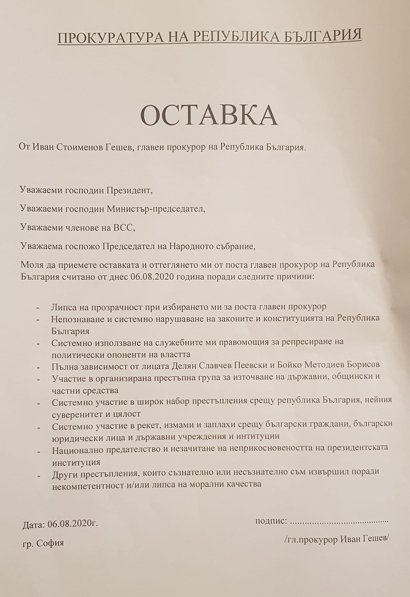 Те били пред кабинета на главния прокурор по три причини: да му връчат оставката за подпис, да му връчат заповедта за граждански арест и да подадат сигнал за нарушенията, които е извършил.