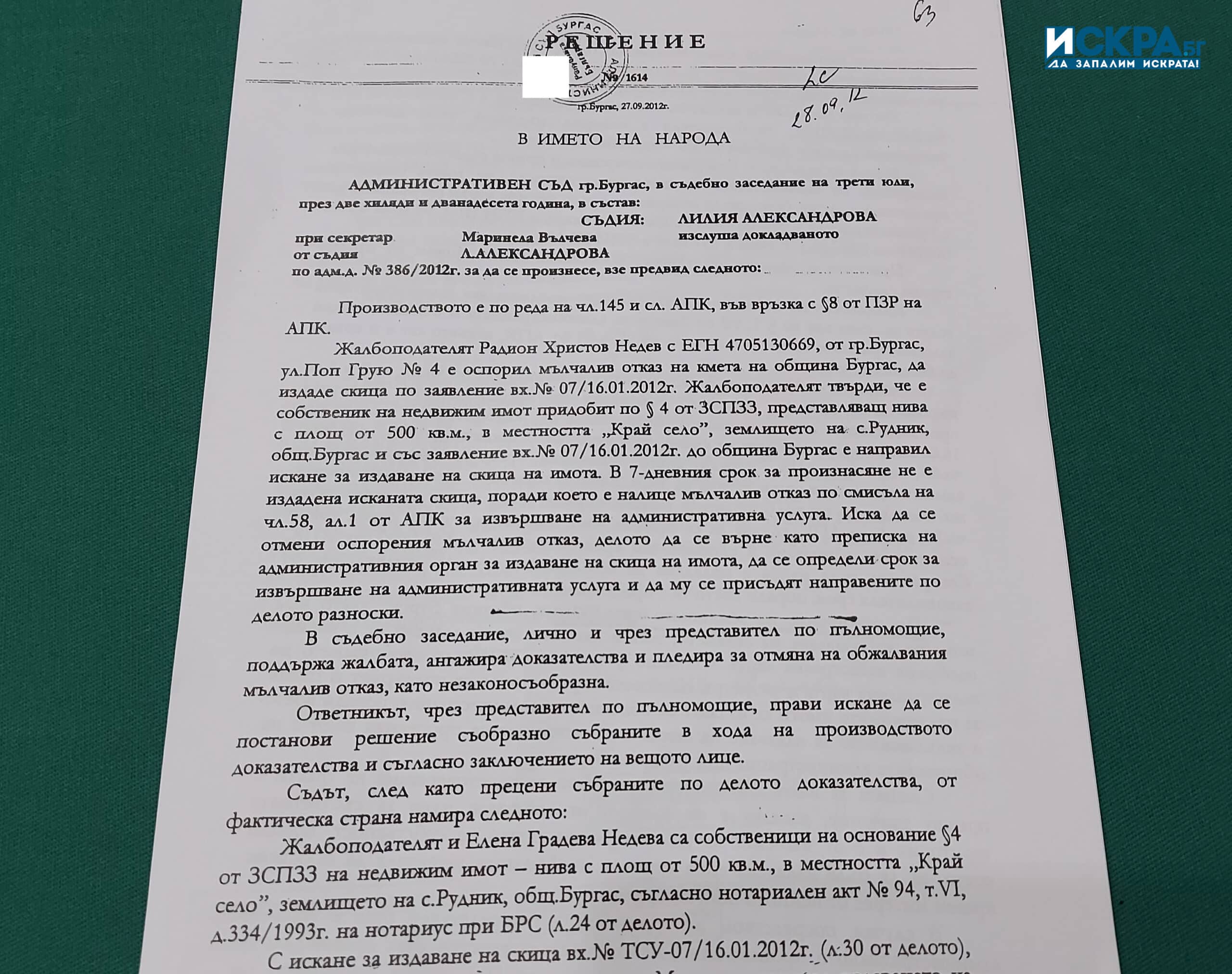 Бургазлия се свърза с Искра.бг, тъй като от години води битка за негов имот в кв. „Черно море“ с кмета Димитър Николов. Казусът на Радион Недев и градоначалника е започнал още през 2012 година. Гражданинът твърди, че Николов му отказва през всичките тези години да му издаде скица за имота, за който има нотариален акт. Недев е категоричен: