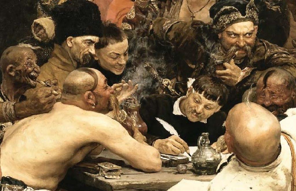 На мен, незнайно защо това ми навява асоциация с онази стара картина „Казаци пишат писмо до турския султан“. Но ако потърсите текста на тяхното писмо, ще видите какво точно са писали.