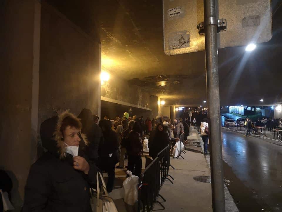 Всичко това се случва на фона на минусови температури, дъжд и силен вятър. В социалната мрежа Facebook бяха разпространени снимки, от които се вижда и че не се спазват противоепидемичните мерки.