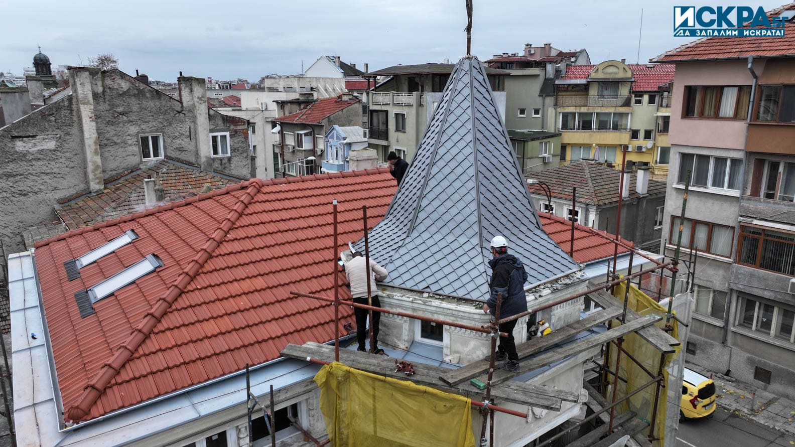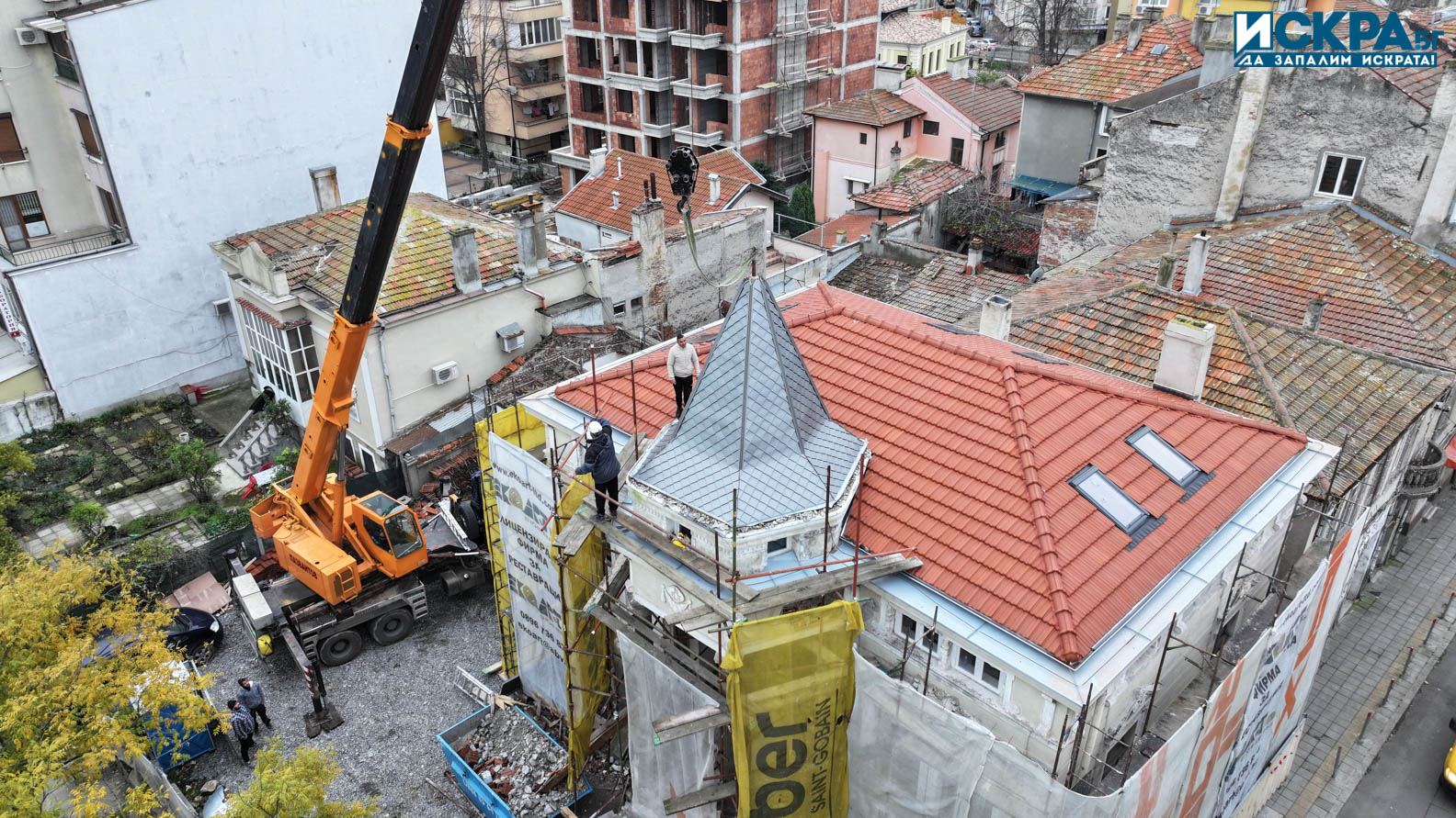 С помощта на кран днес бе поставен емблематичното остро кубе над входната врата, което е може би е и основната причина къщата да бъде смятана за архитектурен шедьовър от всички съвременници. Новото кубе е точно копие на оригинала, който бе напълно разрушен през последните години.