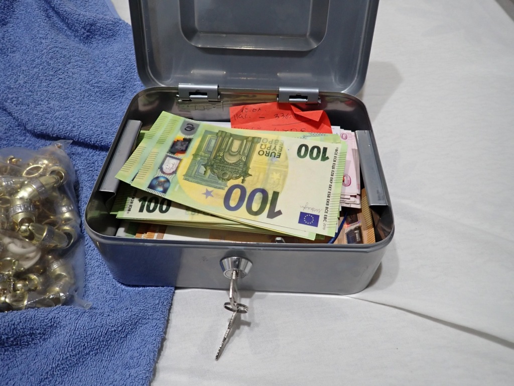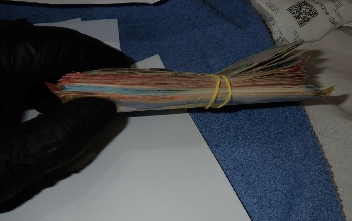 В условията на неотложност са извършени процесуално-следствени действия на адреса. При претърсването са намерени и иззети списъци с имена на хора, 98 неистински банкноти с номинал от 100 евро, 4415 евро в различни банкноти и 4115 турски лири.