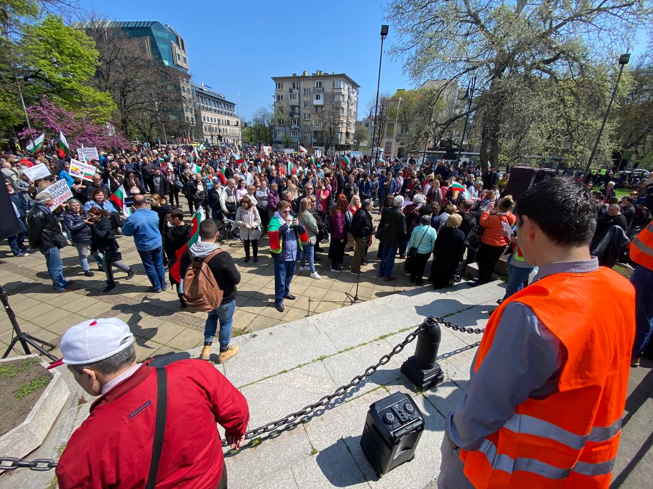 Забелязват се много български знамена. Демонстрацията бе подкрепена и от няколко политически формации.