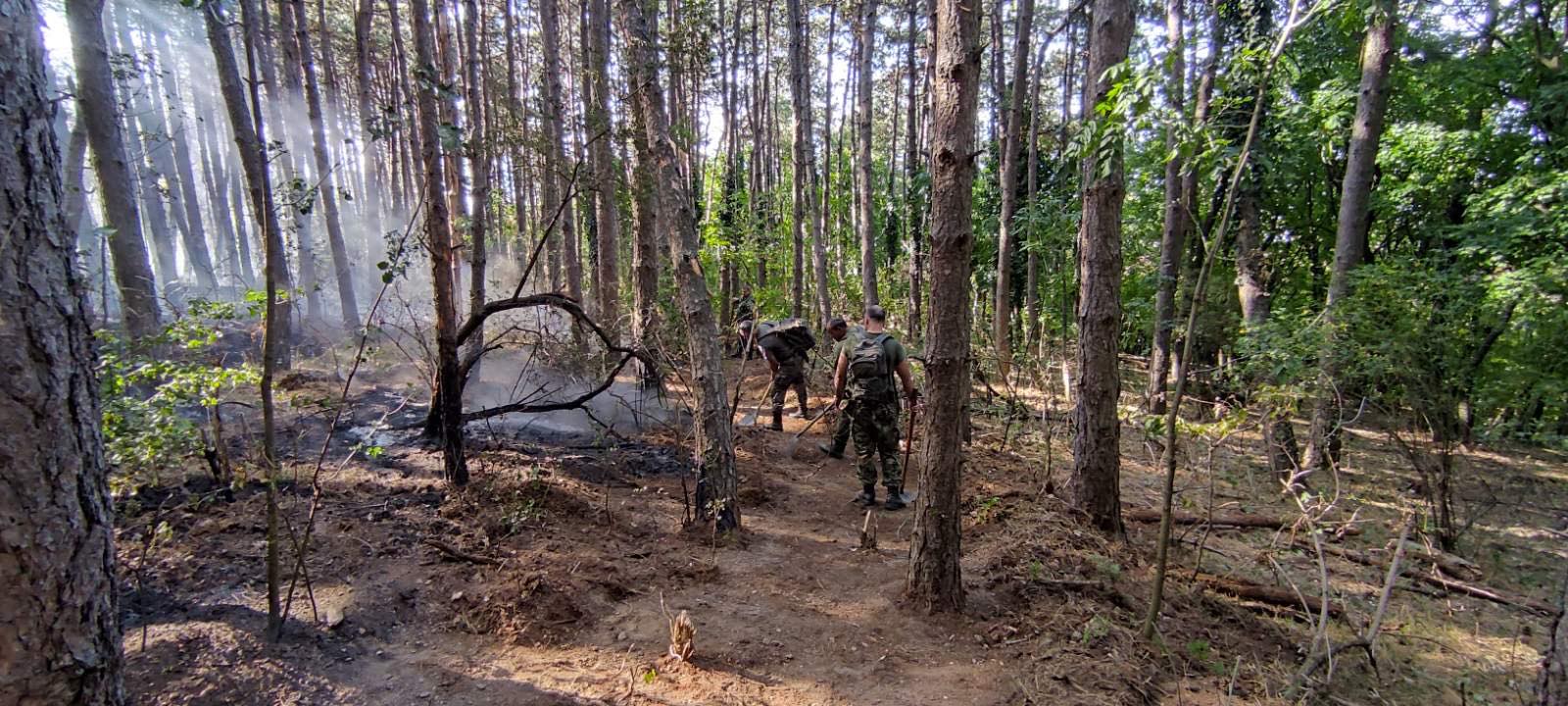 Действията им, включващи наблюдение на района, потушаване на тлеещи огнища и прокарване на просеки, се ръководят от старши лейтенант Кристиан Генов. Включен е и медицински екип от състава на 61-а бригада.