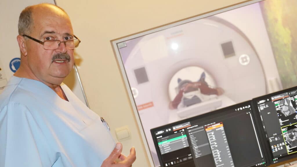 „Ние имаме удоволствието да работим наистина с най-съвременното оборудване – буквално от дни на наше разположение е апарат за магнитно-резонансна томография Magnetom Sola Fit 1.5 Tesla, на фирмата Siemens. Той разполага с най-новите BioMatrix технологии и последен модел софтуер XA51, с най-модерния пакет за реконструкция на образите Deep Resolve Boost“, пояснява доц. Владимир Николов, д.м., началник на Катедра „Образна диагностика“.