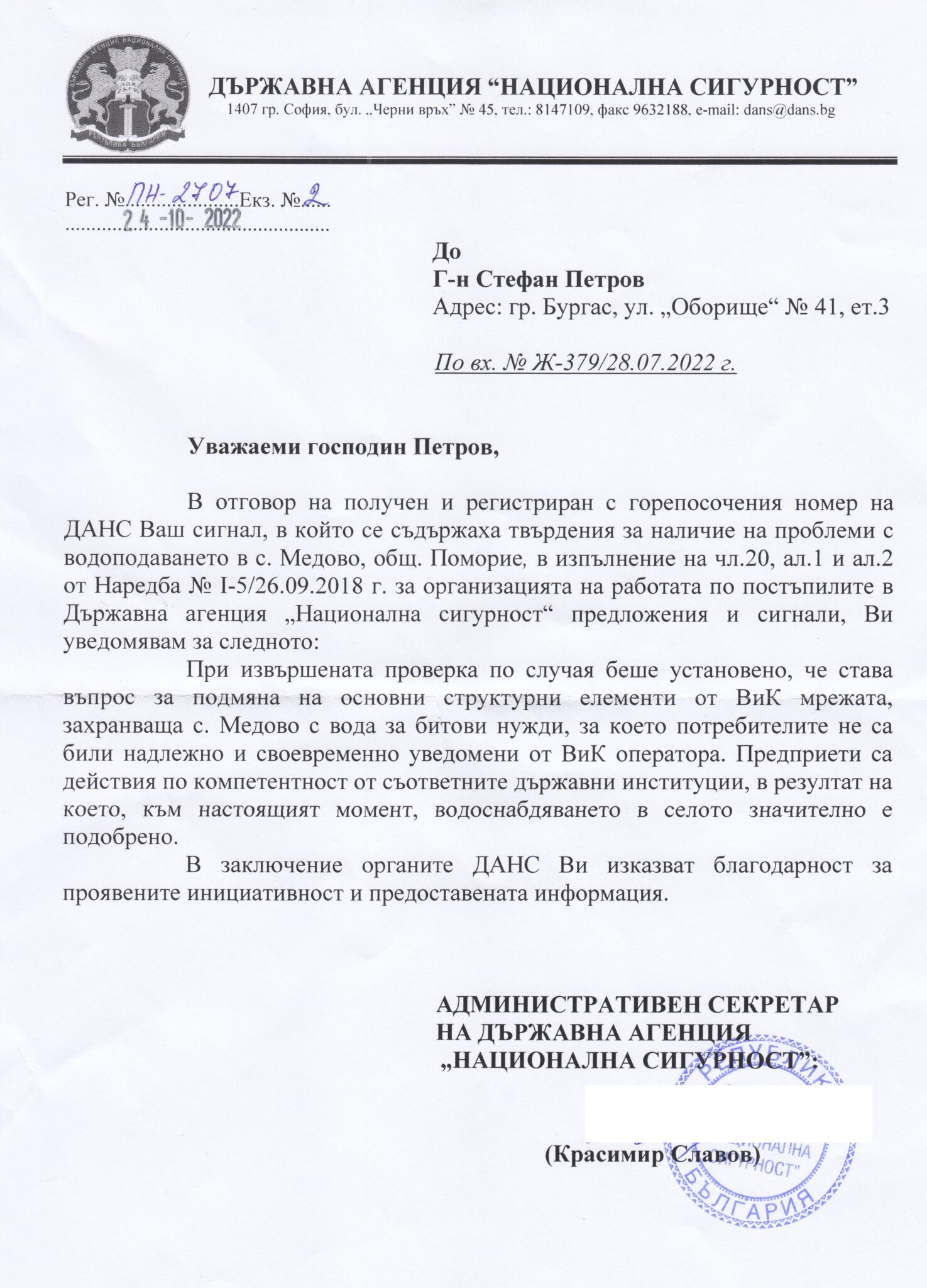 По казуса с водата в село Медово се изписа и изговори много. Бяха подадени от ОЗБГ сигнали до различни институции.