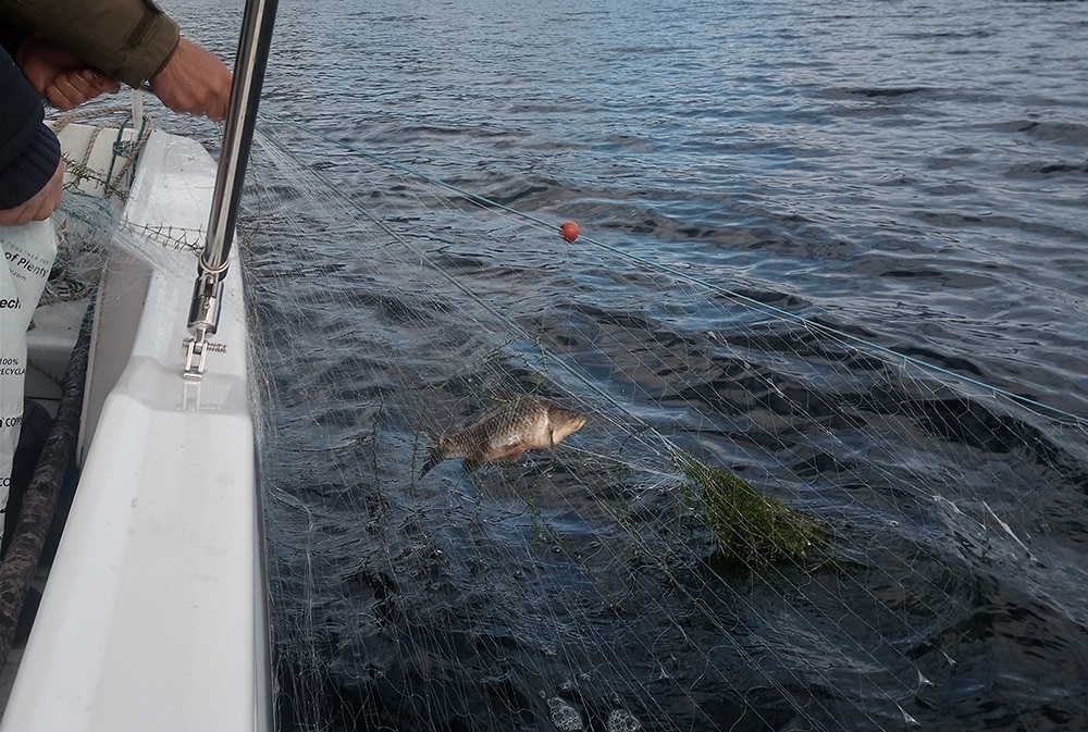 Във вторник при проверка на язовир „Доспат“ с патрулна лодка от инспектори на ИАРА от сектор „Рибарство и контрол“-Смолян в района на махала „Крушата“ на град Сърница е установена и извадена от водата една хрилна мрежа с дължина от 80 м. Тя е заложена от неизвестен извършител и е иззета за унищожаване, а уловените в нея осем броя сребриста каракуда с общо тегло около пет кг са върнати живи в язовира.