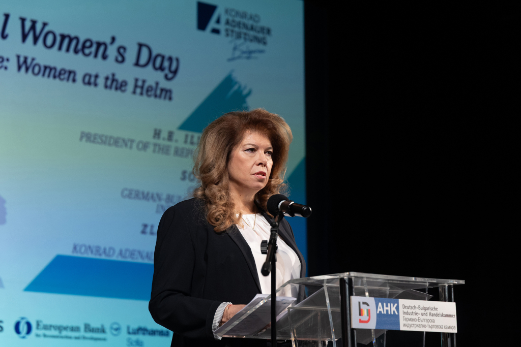 Това заяви президентът Илияна Йотова на откриването на конференция, посветена на ролята на жените в процесите на обществено развитие. Форумът под надслов „Оформяне на бъдещето: жените начело“ се организира от Германо-българска индустриално-търговска камара и Фондация „Конрад Аденауер“ България по повод Международния ден на жената.