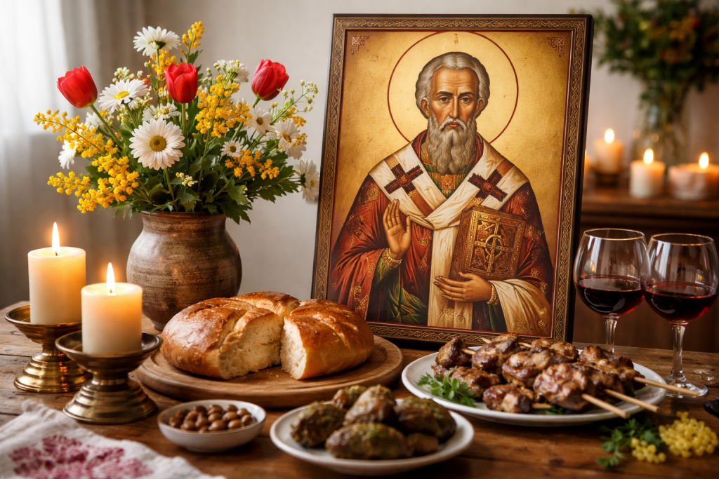 В българската традиция именният ден се смята за по-важен от рождения. Празнуващите приемат поздравления от близки и приятели, а според обичая домът остава отворен за гости. На трапезата присъстват постни или месни ястия в зависимост от периода в църковния календар.