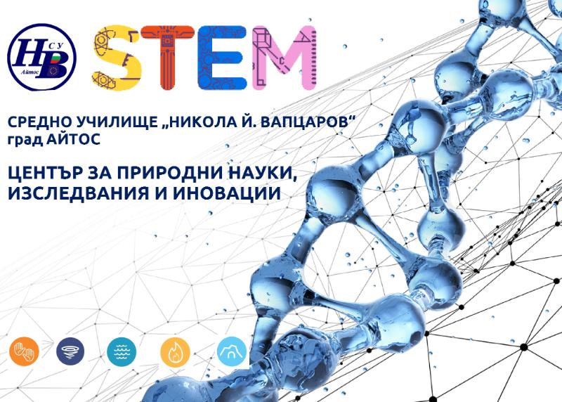 STEM центърът е изграден по Национална програма „Изграждане на училищна STEM среда“ и предлага база за обучение по природни науки и математика в пет многофункционални тематични зони и зона за срещи и презентации. Това е първият и единствен STEM център в Община Айтос, изграден по проект в категорията с финансиране от 300000 лева и съфинансиране от училището в размер на 40000 лева, от които 5000 лева принос чрез остойностен доброволен труд и 5000 лева принос на училищното настоятелство.