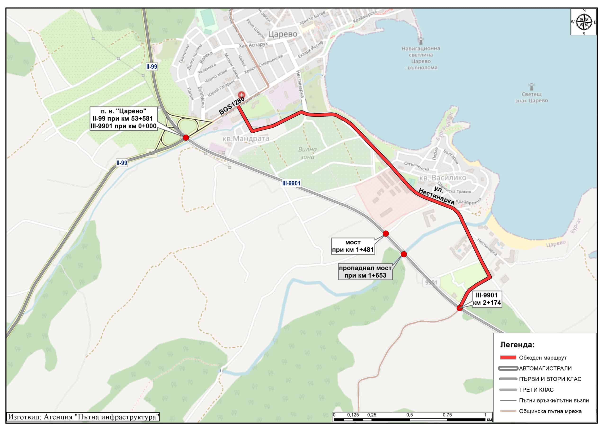 Създаден е обходен маршрут за преминаване от Царево в посока Ахтопол покрай Тракийския университет – квартал „Василико“ и през кръстовището за село Бродилово по основния път, както и обратно. Обходът се обследва, трябва да се разчисти и до края на деня ще бъде сигнализиран.
