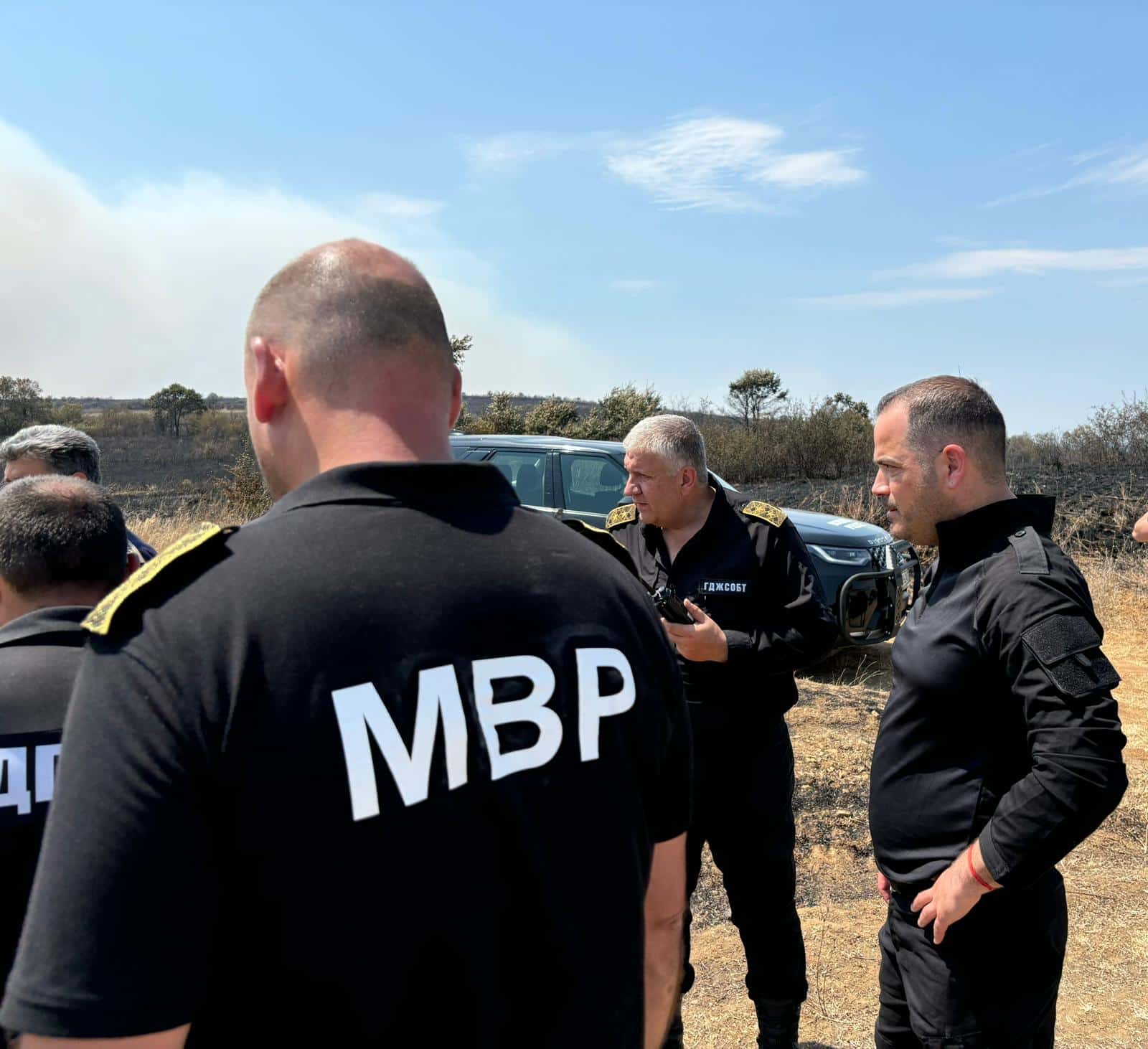 „Няма опасност за хората, селата са обезпечени и около тях работим с тежка техника, за да предотвратим разпространението на огъня“, заяви министър Стоянов. На един от фронтовете на пожара, обхващащ Крайново, Странджа, Голям Дервент и Воден, българските пожарникари работят съвместно с колегите си от Турция.