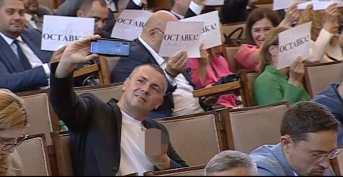 По време на дебатите се видя как народният представител си направи селфи със среден пръст към парламентарната група на ГЕРБ, докато те държаха надписи „Оставка“. Председателят на ГЕРБ Десислава Атанасова призова: