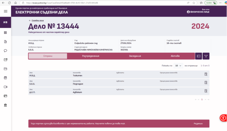 Това, което разбирам от материалите по делото дотук е, че Борис Бонев изглежда се укрива от призовкарите на съда, защото до момента няма информация да е надлежно призован, за да се яви като страна по делото.